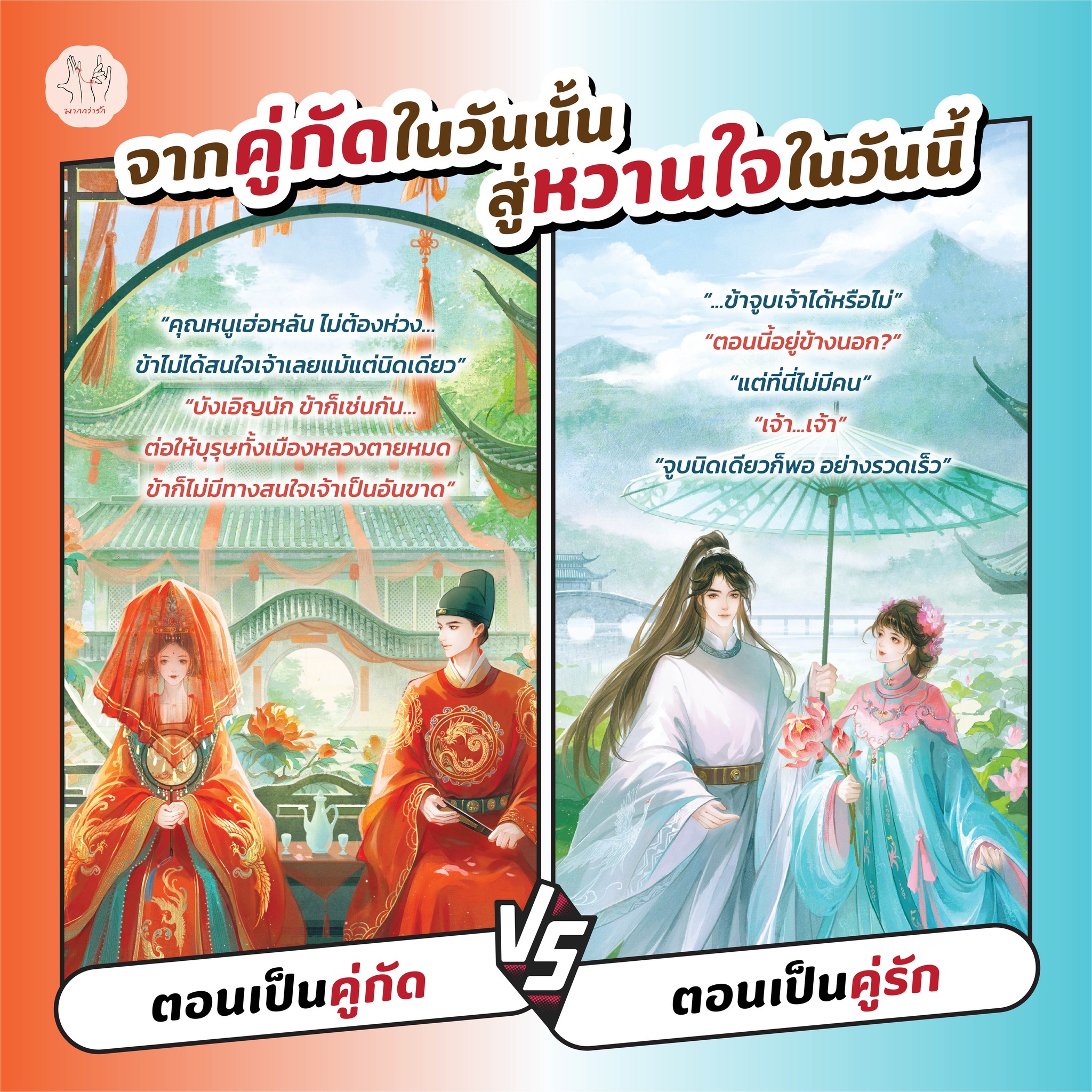 ส่วน “อุบายรักลิขิตเสน่หา” จะให้ฟีลคนละแบบ เป็นโทนคู่กัดฉลาดมาปะทะกันที่อ่านสนุกมาก นางเอกงามจนถูกเรียกว่านารีดึงดูดภัยจึงไม่คิดออกเรือน แต่กลับถูกจับคู่ให้แต่งกับอดีตสหายร่วมสำนักผู้มีภาพลักษณ์งามสง่าแต่ซ่อนความน่าหวั่นหวาดเอาไว้ เรื่องนี้เต็มไปด้วยการชิงไหวชิงพริบ การค่อยๆ เปิดใจ ความสัมพันธ์ค่อยๆ พัฒนา และเคมีที่เข้มข้นแบบนุ่มลึก เหมาะกับวันหยุดที่อยากได้ฟีลหวานแฝงความอันตราย เรียบง่ายแต่อ่านติดมาก