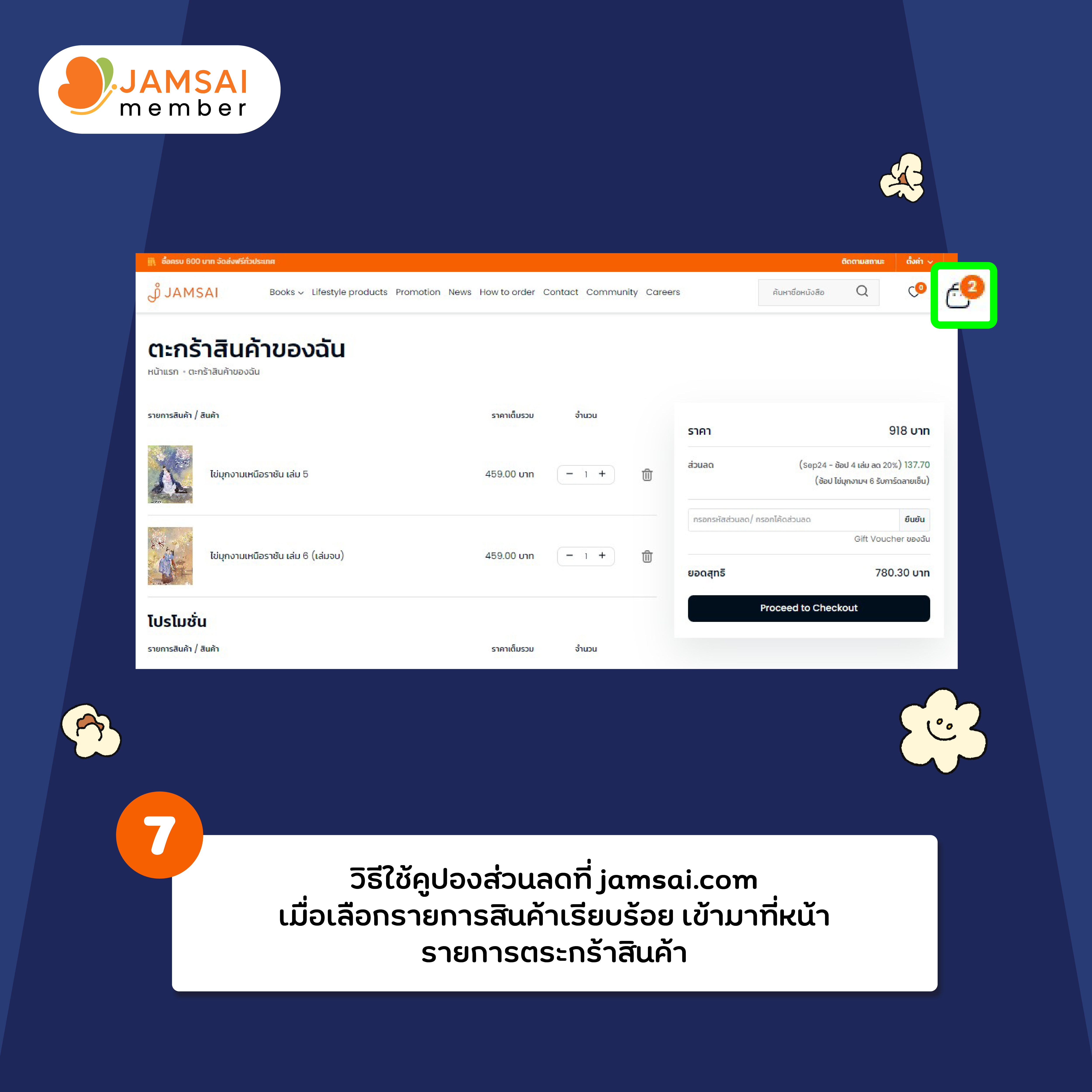 3.2 ส่วนลดจะเข้าระบบสมาชิก 7 – 15 วันทำการหลังทำรายการสั่งซื้อ ตรวจสอบได้ที่ LINE OA : @Jamsai