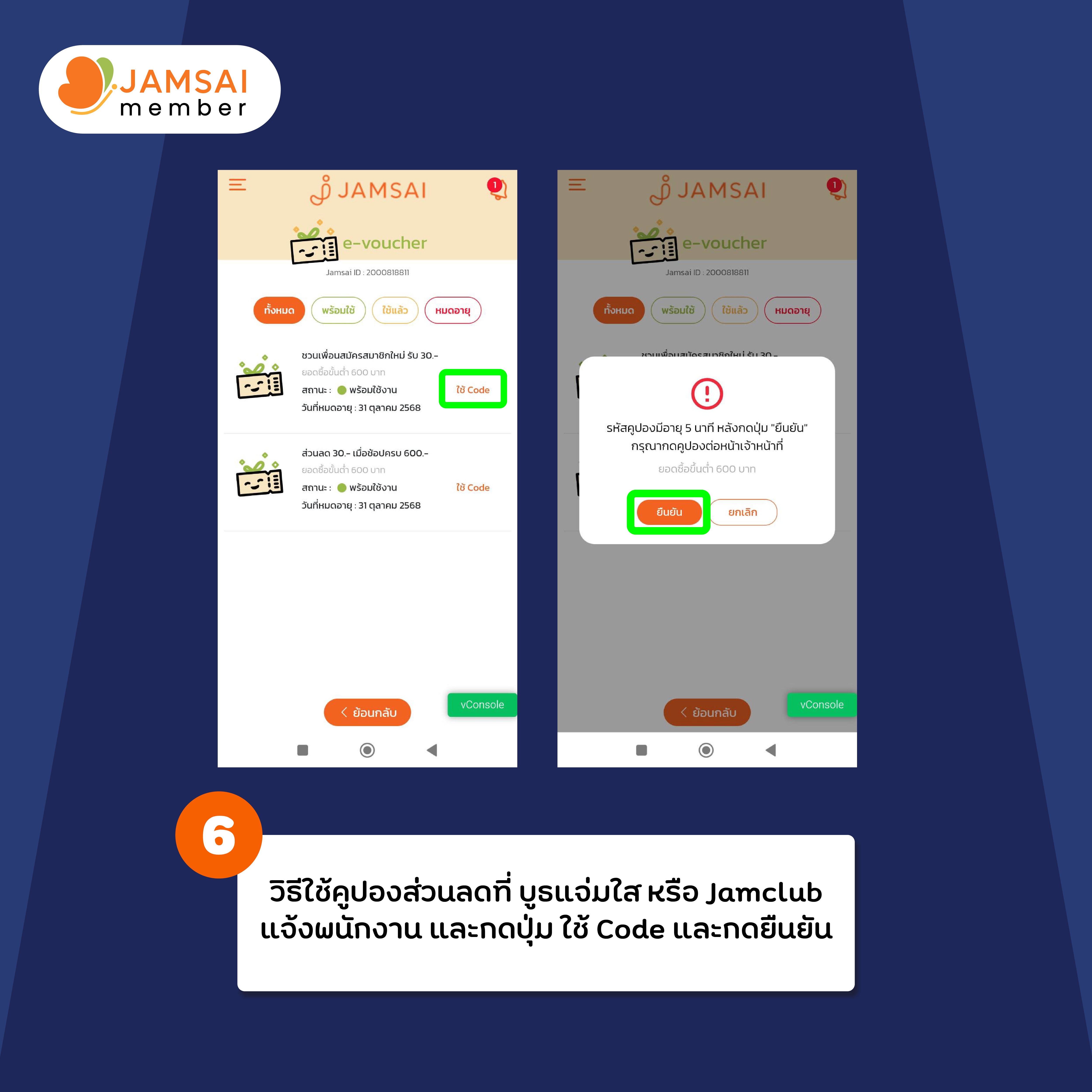 2.1 ส่วนลด 1 สิทธิ์ / 1 ID ใช้ได้ที่บูธ แจ่มใส G02, บูธ DOTG31, jamsai.com และ Jamclub ได้จนถึงวันที่ 31 ต.ค. 68