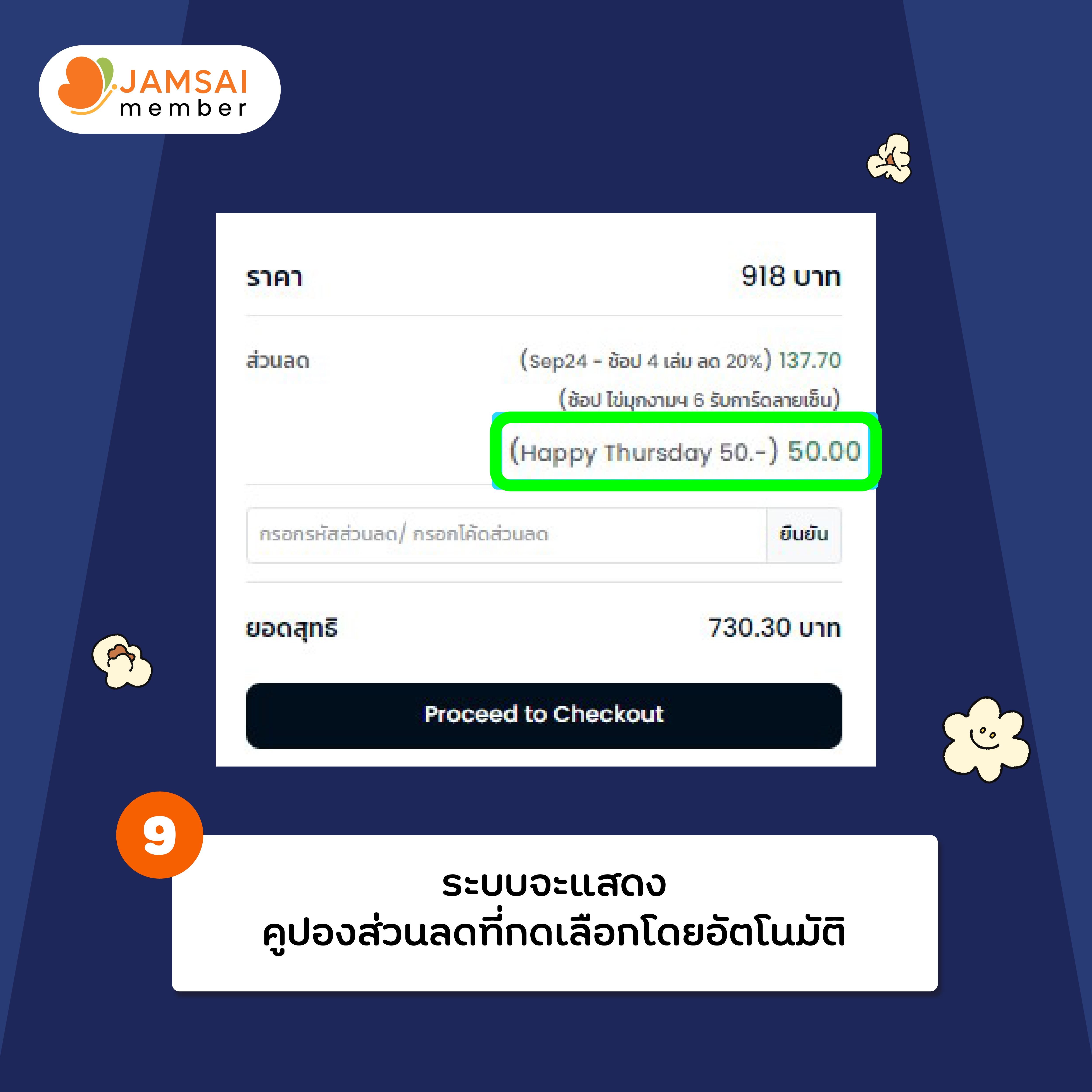 3.1 ทำรายการสั่งซื้อครั้งแรกภายใน 15 วันหลังจากสมัครสมาชิก จึงจะได้รับส่วนลด